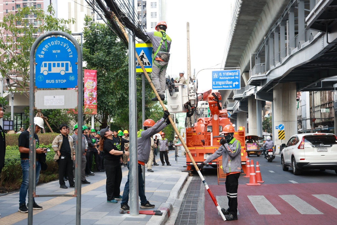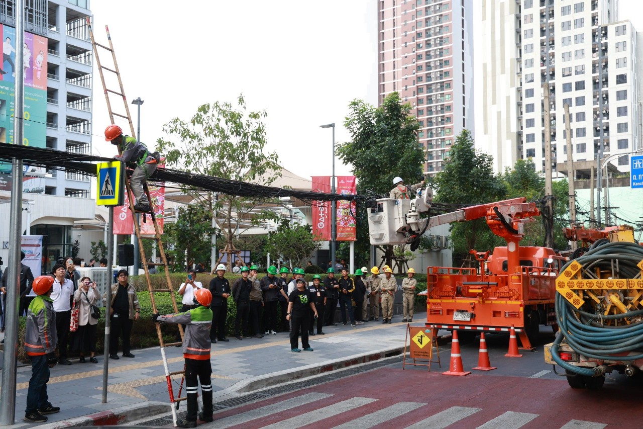 AIS ร่วมกับ สำนักงาน กสทช., กรุงเทพมหานคร, การไฟฟ้านครหลวง, สำนักงานตำรวจแห่งชาติ และหน่วยงานที่เกี่ยวข้อง ลงพื้นที่ปฏิบัติงานเพื่อจัดระเบียบและรื้อถอนเสาไฟฟ้า พร้อมนำสายสื่อสารลงใต้ดิน ภายใต้โครงการปรับเปลี่ยนระบบสายไฟฟ้าอากาศสู่สายไฟฟ้าใต้ดิน “ถนนสวย..ไร้เสาสาย @ประชาราษฎร์สาย 2” เพื่อเพิ่มความเป็นระเบียบเรียบร้อย ลดความเสี่ยงต่อการเกิดอุบัติเหตุ และช่วยปรับปรุงทัศนียภาพให้สวยงามยิ่งขึ้นในย่านถนนประชาราษฎร์สาย 2 ซึ่งเน้นการบูรณาการความร่วมมือระหว่างหน่วยงานรัฐและภาคเอกชน เพื่อยกระดับมาตรฐานความปลอดภัยของประชาชน ตลอดจนพัฒนาเมืองให้มีภูมิทัศน์ที่เป็นระเบียบและน่าอยู่อย่างยั่งยืน