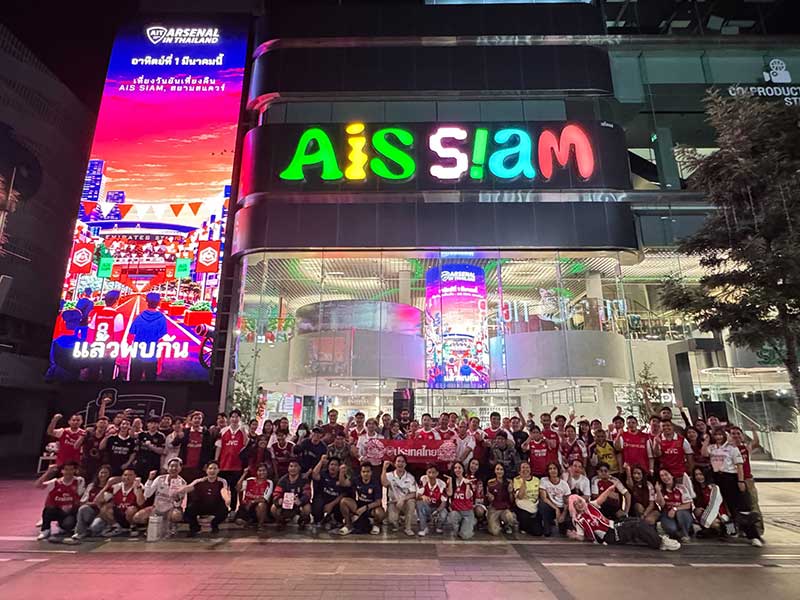 AIS SIAM เดินหน้าตอกย้ำ คอมมูนิตี้สเปซของชาว Gen-C ใจกลางสยาม พื้นที่ของคนชอบเล่นจนได้เป็นตัวจริง จับมือกับตัวจริงของแฟนอาร์เซนอลในประเทศไทย เพจ Arsenal in Thailand จัดกิจกรรม AIS SIAM CO-PLAY NIGHT X Arsenal In Thailand อาร์เซนอลไทย เปลี่ยนพื้นที่กลางสยามให้กลายเป็นสมรภูมิความสนุกของเหล่าแฟนคลับ “เดอะ กันเนอร์ส” ได้มารวมตัวกันตั้งแต่เที่ยงวัน ยัน เที่ยงคืน กับกิจกรรมสุดพิเศษ พร้อมร่วมลุ้นศึกฟุตบอลพรีเมียร์ลีกนัดสำคัญ “ลอนดอน ดาร์บี้แมตช์” ระหว่าง “ปืนใหญ่” อาร์เซนอล ปะทะ “สิงโตน้ำเงินคราม” เชลซี ที่สามารถรับชมได้ที่ AIS PLAY