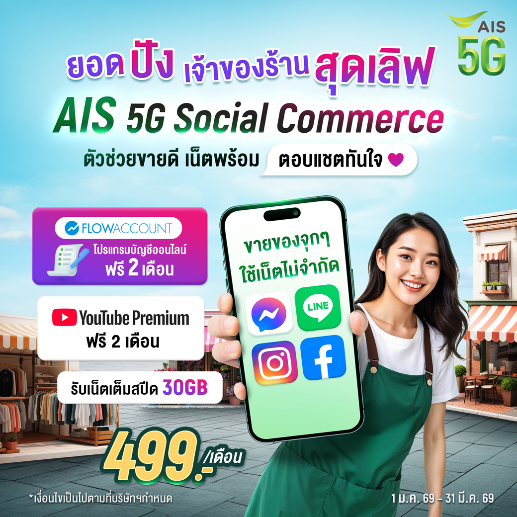 AIS อยู่เคียงข้างลูกค้าและคนไทย พร้อมสนับสนุนการสื่อสารให้ทุกท่าน ผ่านพ้นสถานการณ์ไปด้วยกัน - AIS Shop และ Telewiz ทุกสาขา เปิดให้บริการตามปกติ ในวันที่ 29 มี.ค. 2568 - AIS Call Center พร้อมให้บริการตลอด 24 ชั่วโมง - สามารถทำธุรกรรมต่างๆ ผ่านทางแอปพลิเคชัน myAIS ทุกที่ทุกเวลา - ทีมงานวิศวกรดูแลเฝ้าระวังระบบเครือข่ายอย่างใกล้ชิดตลอด 24 ชั่วโมง หมายเหตุ เวลาเปิดให้บริการแตกต่างกันตามเวลาของศูนย์การค้าฯ