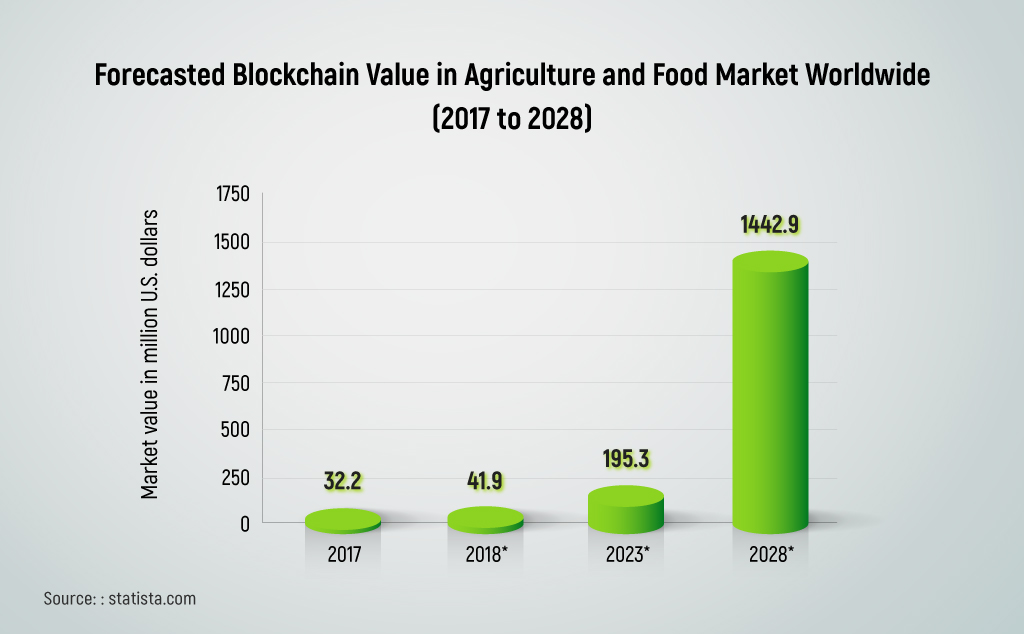 ในขณะนี้ประเทศที่มีการทำเกษตรดิจิทัล ก็ได้มีการเพิ่มประสิทธิภาพการบริหารจัดการ Supply Chain โดยใช้เทคโนโลยีดิจิทัลอย่างระบบ Blockchain เข้ามาช่วยเพื่อให้อุตสาหกรรมเกษตรของตนเองมีความมั่นคงและยั่งยืน พร้อมที่จะปรับตัวต่อการเปลี่ยนแปลงและก้าวไปสู่อนาคต โดยนำ Blockchain เข้ามาช่วยเชื่อมต่อผู้ที่อยู่ในห่วงโซ่อุปทานของอุตสาหกรรมเข้าหากัน ตั้งแต่ส่วนการผลิต ส่วนของการจัดเก็บสินค้าคงคลัง ส่วนของตลาด เจ้าหน้าที่รัฐ ส่วนของการขนส่งและผู้บริโภค จากสถิติพบว่าเทคโนโลยี Blockchain ที่นำมาใช้ในอุตสาหกรรมเกษตร ปี 2017 มีมูลค่าทางการตลาดอยู่ที่ประมาณ 32.2 ล้านดอลลาร์สหรัฐ และมีการคาดการณ์กันว่าปี 2028 มูลค่าจะสูงขึ้นไปถึง 1.4 พันล้านดอลลาร์สหรัฐ สะท้อนแนวโน้มว่านับจากนี้ไปเทคโนโลยีดิจิทัลและ Blockchain จะมีบทบาทและความสำคัญต่ออุตสาหกรรมเกษตรเป็นอย่างมาก อาจเป็นสิ่งที่ชี้ชะตาอุตสาหกรรมเกษตรของประเทศได้เลยทีเดียว