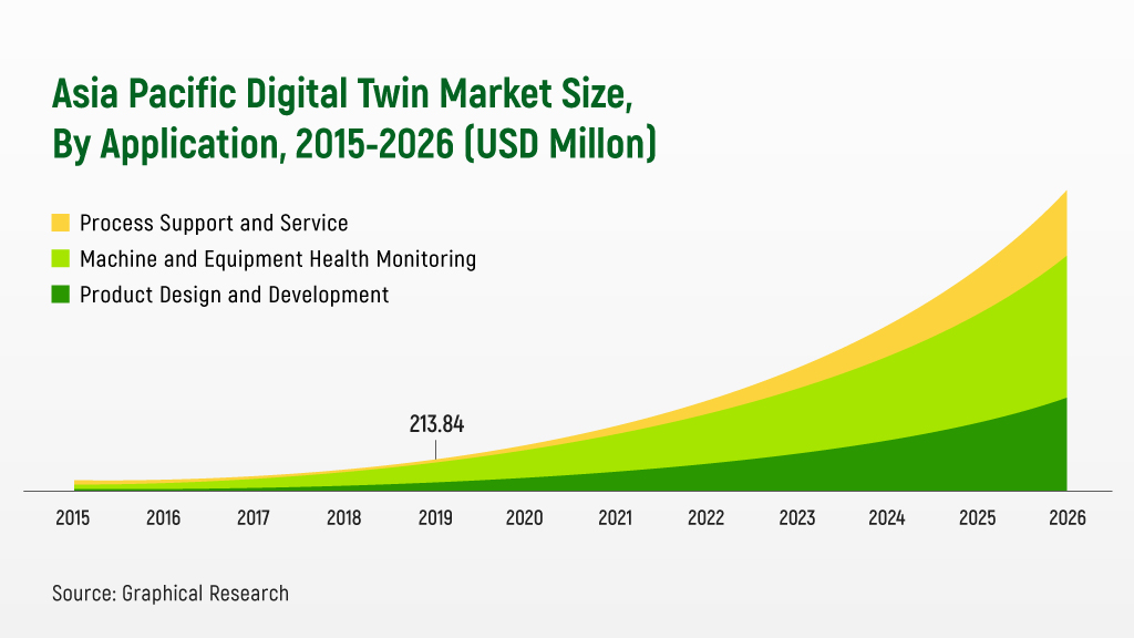 รายงานจาก Graphical Research บริษัทที่ดำเนินการศึกษาวิจัยข้อมูลธุรกิจอุตสาหกรรมในเชิงลึก ชี้ว่า ตั้งแต่ปี 2020 เป็นต้นไปจนถึงปี 2026 บริษัทธุรกิจอุตสาหกรรมต่าง ๆ ในภูมิภาคเอเชียแปซิฟิกและยุโรปมีแนวโน้มจะนำเทคโนโลยี Digital Twins มาใช้กับธุรกิจของตนเองมากขึ้นเรื่อย ๆ และในทั้งสองภูมิภาคนี้มีแนวโน้มว่ามูลค่าทางการตลาดของเทคโนโลยีคู่แฝดดิจิทัลจะเติบโตขึ้นอย่างก้าวกระโดด โดยมูลค่าทางการตลาดของเทคโนโลยี Digital Twins ในปี 2019 ตลาดภูมิภาคเอเชียแปซิฟิกและตลาดยุโรป มีมูลค่าอยู่ที่ 1 พันล้านดอลลาร์ มีการณ์คาดการณ์ว่าปี 2020 - 2026 มูลค่าอาจโตขึ้น 30 - 35% โดยเฉพาะตลาดภูมิภาคเอเชียแปซิฟิกที่จะนำเทคโนโลยี Digital Twins มาใช้ในการลดความผิดพลาดในการทำงานของกระบวนการผลิต รวมไปถึงนำมาใช้ลดต้นทุนการออกแบบสินค้าและการบริการใหม่ ๆ เพื่อให้ลูกค้าได้รับประสบการณ์ใหม่ ๆ ที่น่าประทับใจมากขึ้น