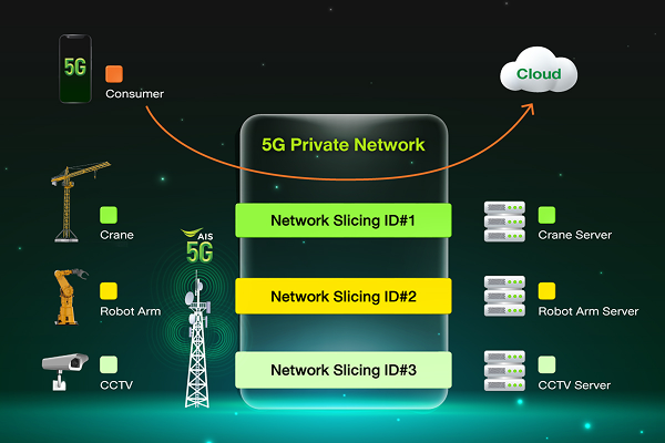 | การใช้งานเครือข่าย | เครือข่ายอินเทอร์เน็ตใช้ร่วมกับลูกค้าทั่วไป | เครือข่ายอินเทอร์เน็ตที่ถูกจัดสรรสำหรับลูกค้าองค์กรโดยเฉพาะ | เครือข่ายส่วนบุคคลแบบไร้สาย ปลอดภัยด้วยช่องสัญญาณเฉพาะสำหรับองค์กร | เครือข่ายส่วนบุคคลแบบไร้สาย ปลอดภัยด้วยช่องสัญญาณเฉพาะสำหรับองค์กร สามารถบริหารจัดการทรัพยากรและการันตีแบนด์วิดท์ได้ | เครือข่าย 5G ความเร็วสูงระดับ Gigabit บนคลื่นความถี่ 26GHz ความเร็วสูงมาก หน่วงต่ำ และรองรับการใช้งานหนาแน่น |