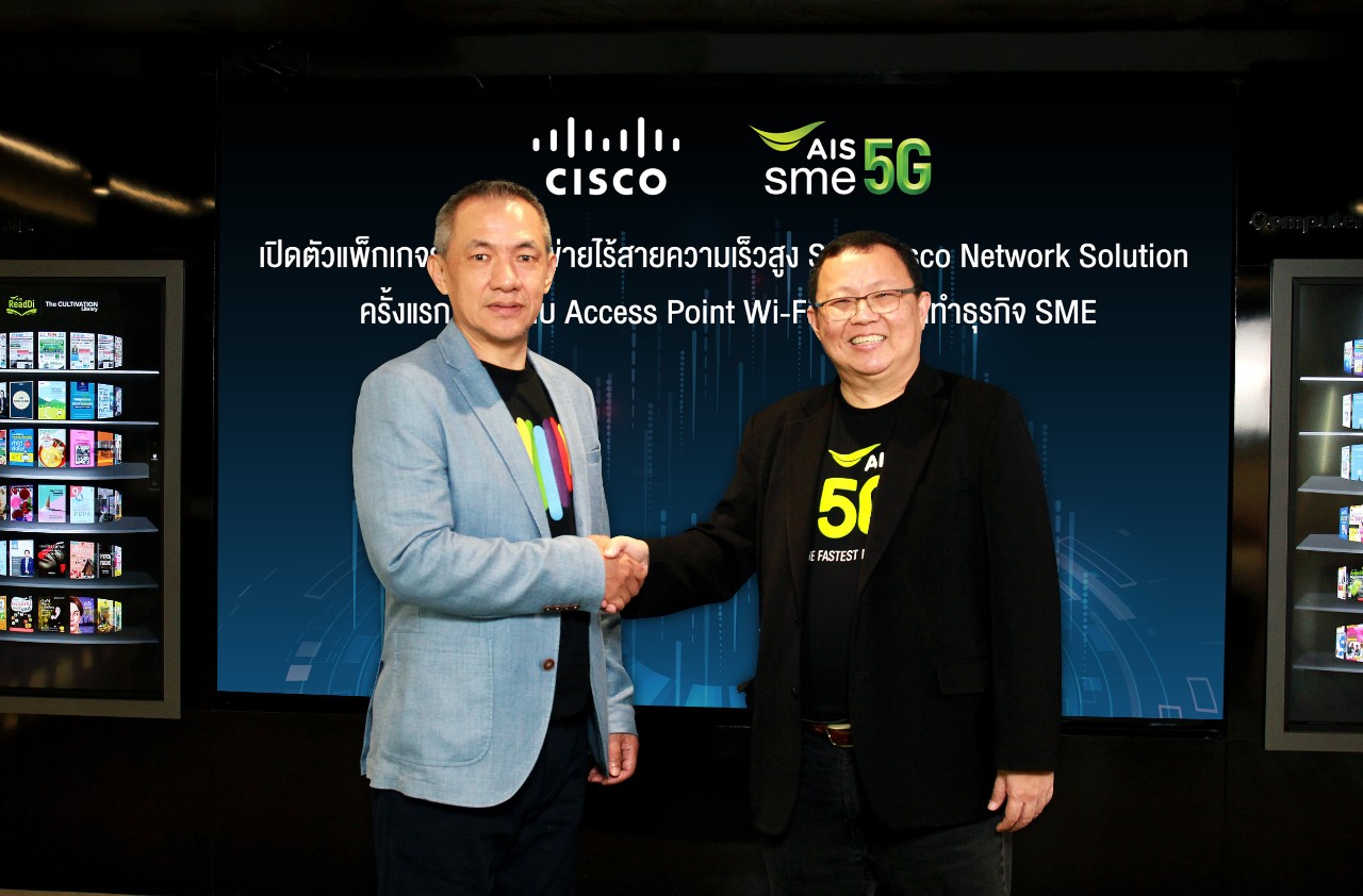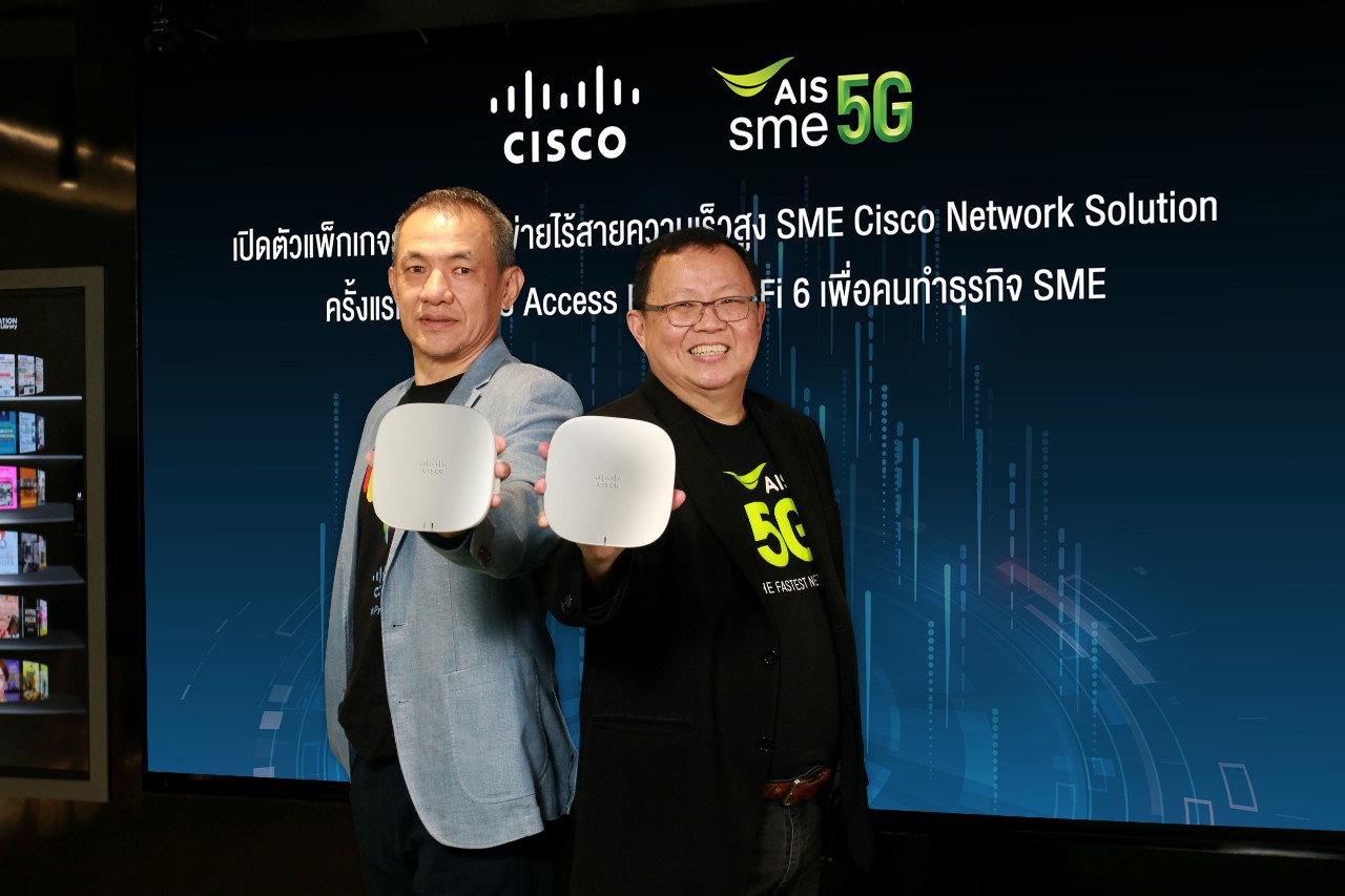 ล่าสุด AIS SME ร่วมมือกับ ซิสโก้ ซิสเต็ม (ประเทศไทย) เปิดตัวแพ็กเกจระบบเครือข่ายไร้สายความเร็วสูง SME Cisco Network Solution Next-Gen Wi-Fi 6 ครั้งแรกของประเทศไทย พร้อมมอบประสบการณ์การใช้งานที่ดีที่สุดให้กับผู้ใช้ ด้วยอุปกรณ์เครือข่ายไร้สายใหม่ล่าสุด ส่งสัญญาณไกล และเสถียรกว่า ครอบคลุมพื้นที่การใช้งานกว้างกว่าเดิม เพิ่มประสิทธิภาพในการรับ-ส่งข้อมูล ลดความแออัดของเครือข่าย และรองรับการใช้งานของผู้ใช้ อุปกรณ์ดิจิทัลและอุปกรณ์ IoT ได้มากขึ้น ก้าวข้ามทุกข้อจำกัด ให้ทุกธุรกิจดำเนินไปได้แบบลื่นไหลไร้รอยต่อ