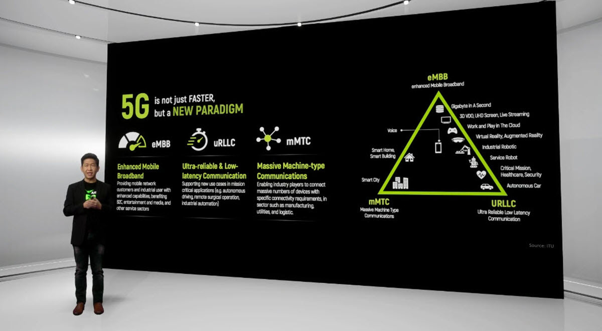 • Enhanced Mobile Broadband (eMBB) – ปลดล็อกความเร็วในการส่งข้อมูลสูงกว่า 4G ถึง 20 เท่า ด้วยเหตุนี้เองแอปพลิเคชันที่ให้กำเนิดข้อมูลปริมาณมากนั้นจะสามารถแสดงศักยภาพได้สูงขึ้น เช่น วีดีโอสตรีมมิ่ง งานวิเคราะห์ข้อมูล และอื่นๆ