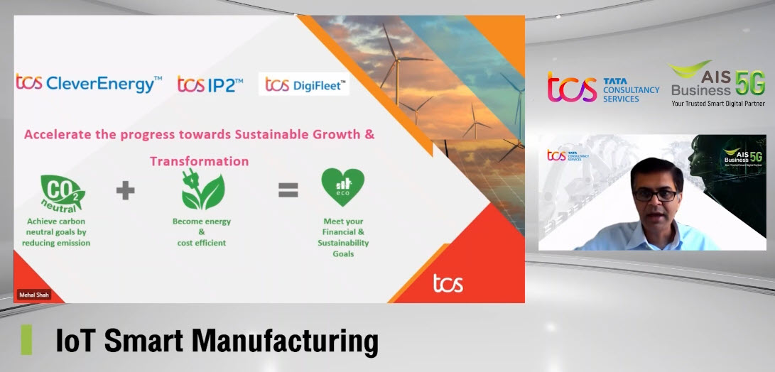 IoT และ 5G จะช่วยตอบโจทย์ของธุรกิจที่ท้าทาย เช่น เทรนด์ในการลดอัตราการปลดปล่อยคาร์บอนที่เริ่มถูกผลักดันอย่างจริงจัง นำมาจากสหภาพยุโรปที่มีการกำหนดอัตราการปลดปล่อยพลังงาน โดยเฉพาะกระบวนการผลิตสินค้าที่จะนำมาเข้ามาในสหภาพที่จะมีผลประโยชน์ทางการค้า ด้วยเหตุนี้เองผู้ผลิตจึงต้องหาทางที่จะนำเทคโนโลยีเข้ามาติดตามกระบวนการผลิตของตน ซึ่ง TCS เองเป็นผู้เชี่ยวชาญในด้านนี้ เชื่อว่าการใช้ IoT จะช่วยสร้างข้อมูลให้ธุรกิจสามารถติดตามระบบการผลิตได้