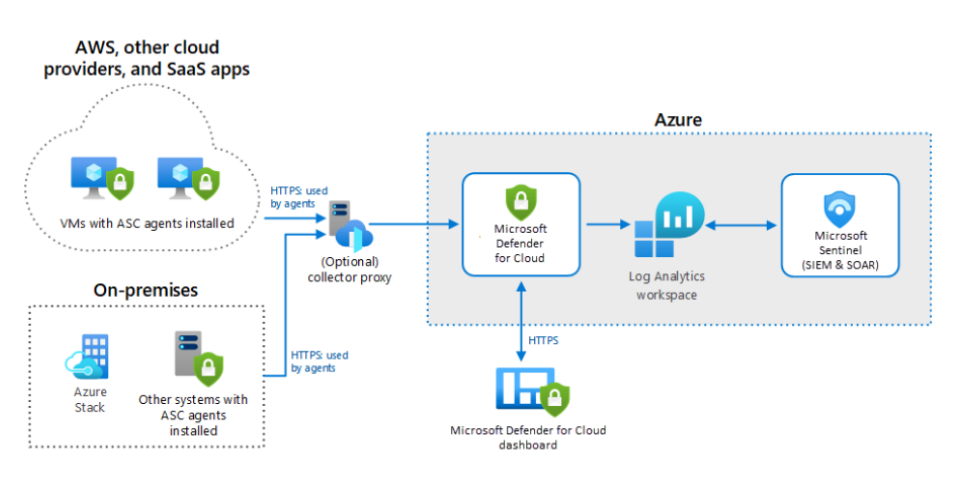 โดยการทำงานของ Microsoft Defender for Cloud ถือเป็นส่วนหนึ่งของการทำ Security Operations ที่สามารถทำงานได้ครบทั้งระบบไอที หน้าจอ dashboard เดียวสามารถมองเห็นสุขภาพโดยรวมของโครงสร้างทั้งหมด