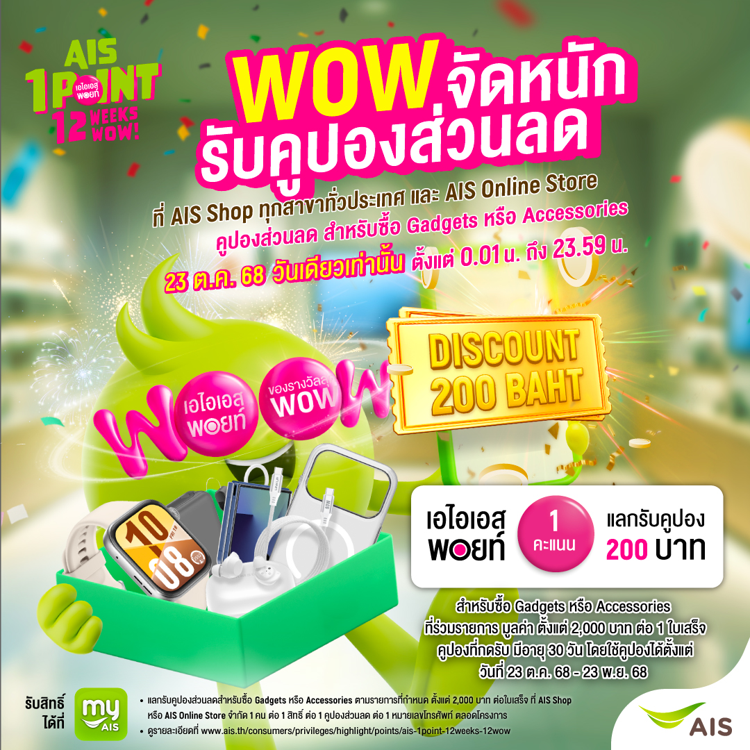 ใช้ 1 คะแนน แลกคูปอง 200 บาท ใช้เป็นส่วนลดเมื่อซื้อตั้งแต่ 2,000 บาท