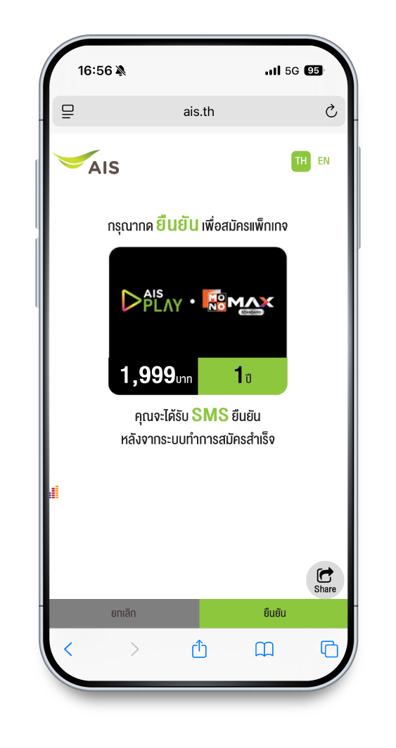 สมัครได้เฉพาะแพ็กเกจ PLAY MONOMAX Standard รายปี 1,999 บาท/ปี เท่านั้น