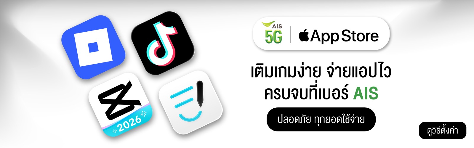 · ความคุ้มครองเป็นไปตามเงื่อนไขในกรมธรรม์ โปรดศึกษาเงื่อนไขกรมธรรม์ก่อนทำรายการชำระเงินผ่านบริการ AIS mPAY Mobile Payment