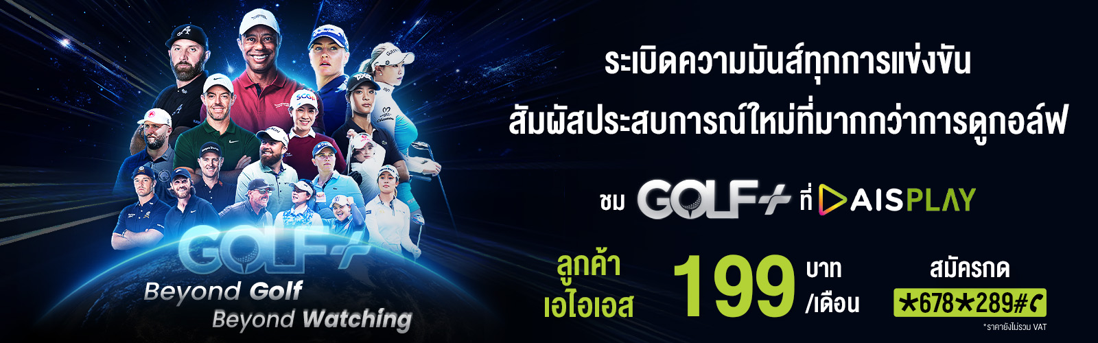 “คุณได้เริ่มใช้งานแพ็กเกจ Golf Plus+ รายเดือน 199 บาท (ไม่รวม VAT) โดยจะถูกต่ออายุอัตโนมัติ ระเบิดความมันส์ทุกการแข่งขัน เต็มอิ่มทุกอรรถรสเพื่อแฟนกอล์ฟตัวจริง รับชมช่อง Golf Plus+ ได้บน AIS PLAY”