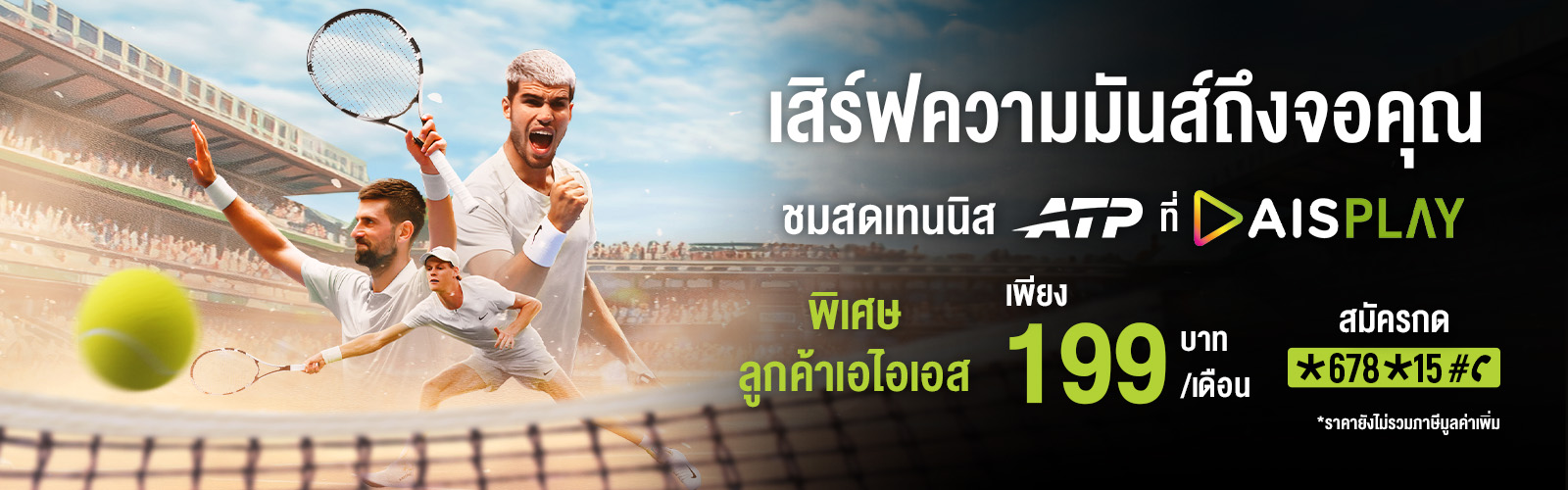 แพ็กเกจ TENNISจากเอไอเอส ให้บริการเฉพาะลูกค้าเอไอเอส ระบบรายเดือน ระบบเติมเงิน และ AIS Fibre3 เท่านั้น