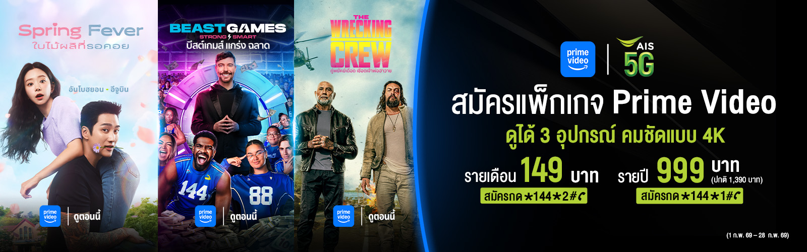ขอสงวนสิทธิ์เปลี่ยนแปลงเงื่อนไขและรายละเอียดบริการ Prime Video โดยจะแจ้งให้ทราบทางแอปพลิเคชัน myAIS