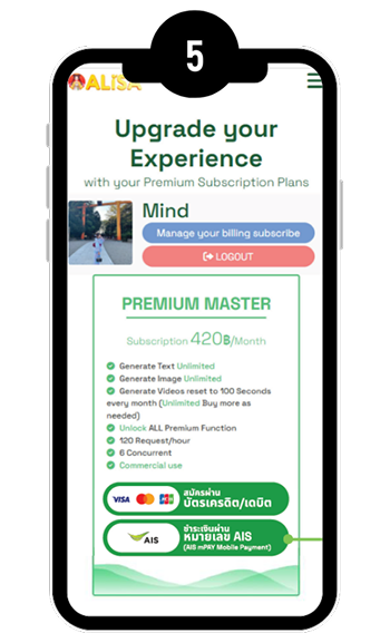 ระบบจะคิดค่าบริการ Alisa Premium เดือนละ 420 บาท (ราคาปกติ) และแจ้งค่าบริการบนใบแจ้งค่าใช้บริการของ AIS