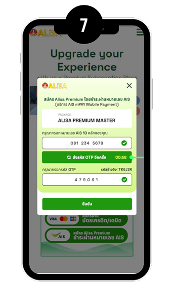7. ใส่รหัส OTP และกดยืนยัน