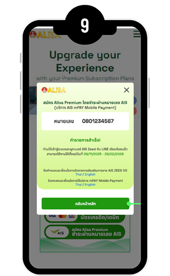 เริ่มนับตั้งแต่วันที่ ยืนยันการสมัคร Alisa Premium ผ่าน OTP บน LINE และสมัครสำเร็จ