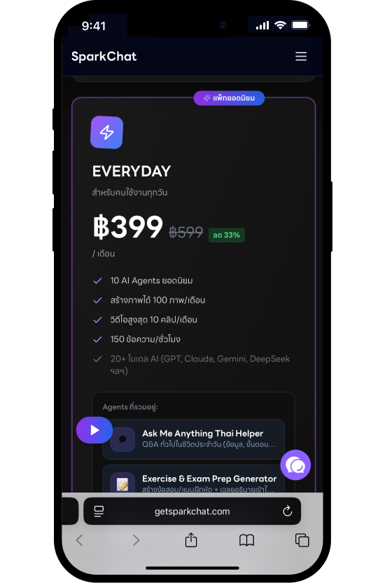 SparkChat คือแพลตฟอร์ม AI ที่รวมโมเดล AI ชั้นนำระดับโลกไว้ในที่เดียว พร้อม AI Agents ที่ใช้งานง่าย ไม่ต้องคิด Prompt เอง ในราคาเดียว แทนที่จะจ่ายแยกหลายที่