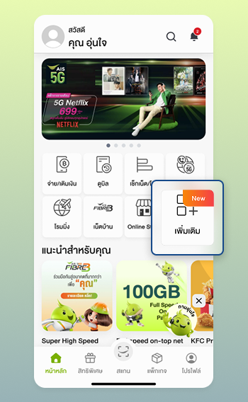 1. เข้า myAIS app ไปที่เมนูลัด “เพิ่มเติม”