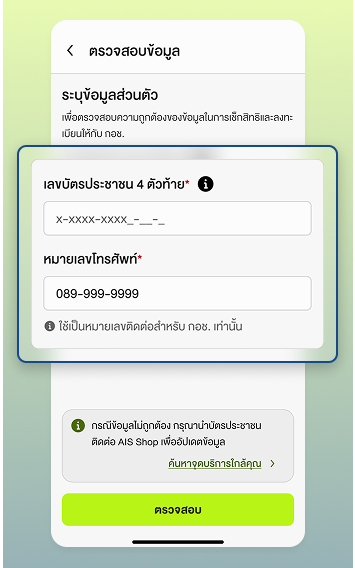 4. ใส่เลขบัตรประจำตัวประชาชน 4 ตัวท้าย