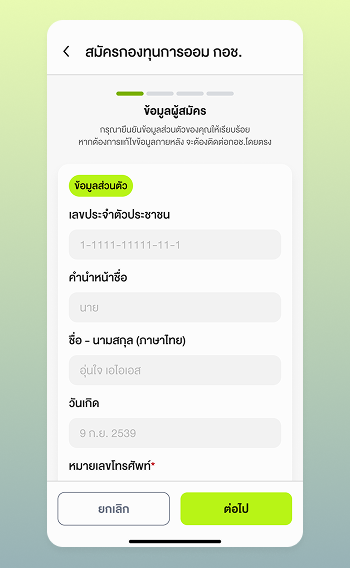 7. ตรวจสอบข้อมูลส่วนบุคคลให้ถูกต้อง จากนั้นกด “ต่อไป”