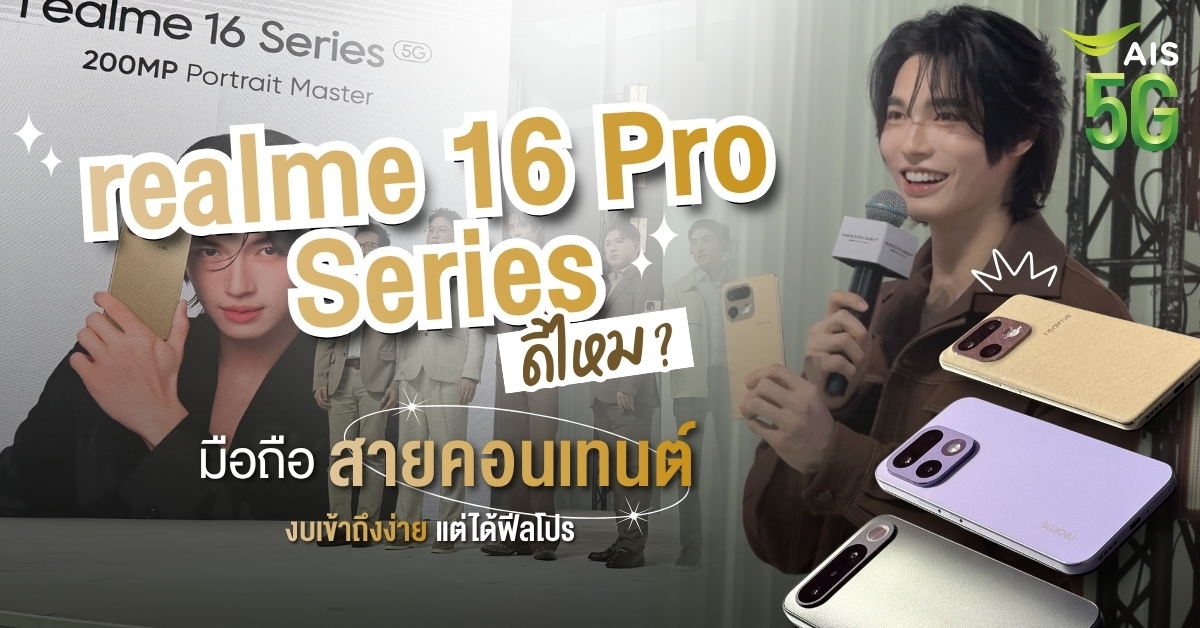 realme 16 Pro Series มือถือสายคอนเทนต์ กล้อง 200MP ถ่ายคนสวย แบต 7000mAh ชาร์จไว 80W เหมาะกับสายโซเชียล เกม และใช้งานหนักทั้งวัน