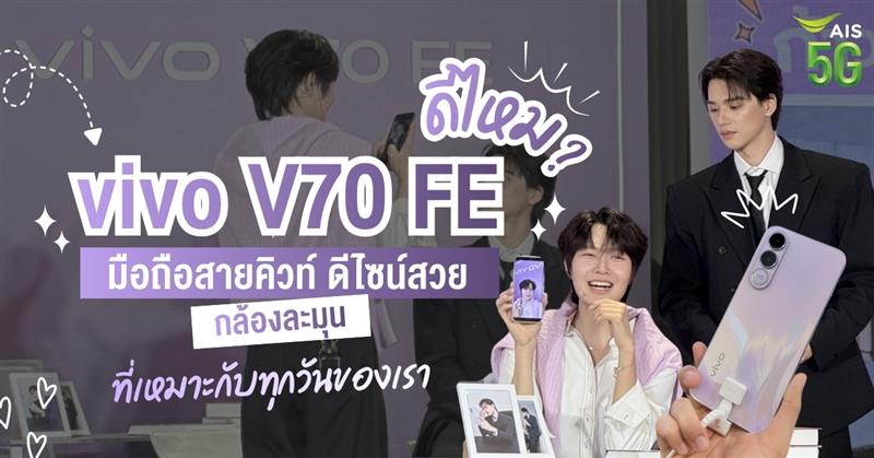 รีวิว vivo V70 FE มือถือสายไลฟ์สไตล์ กล้องสวย โทนละมุน ดีไซน์พรีเมียม ใช้งานง่าย พร้อมโปร AIS ราคาเริ่ม 7,799 บาท