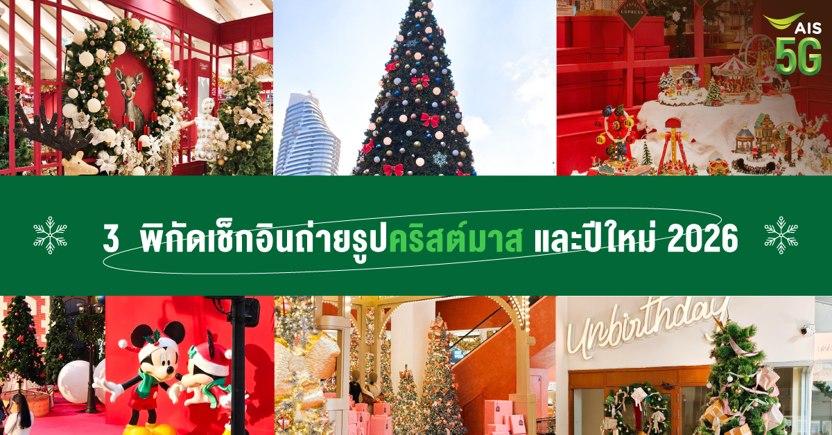 ซีซั่นคริสต์มาส 2026 มาแล้ว! รวม 3 พิกัดเช็กอินสุดฮิต ทั้งไฟประดับ ต้นคริสต์มาส และมุมถ่ายรูปอลังการ ถ่ายสวยทุกช็อต อัปโซเชียลปัง วางแพลนเที่ยวปลายปีห้ามพลาด 🎄✨