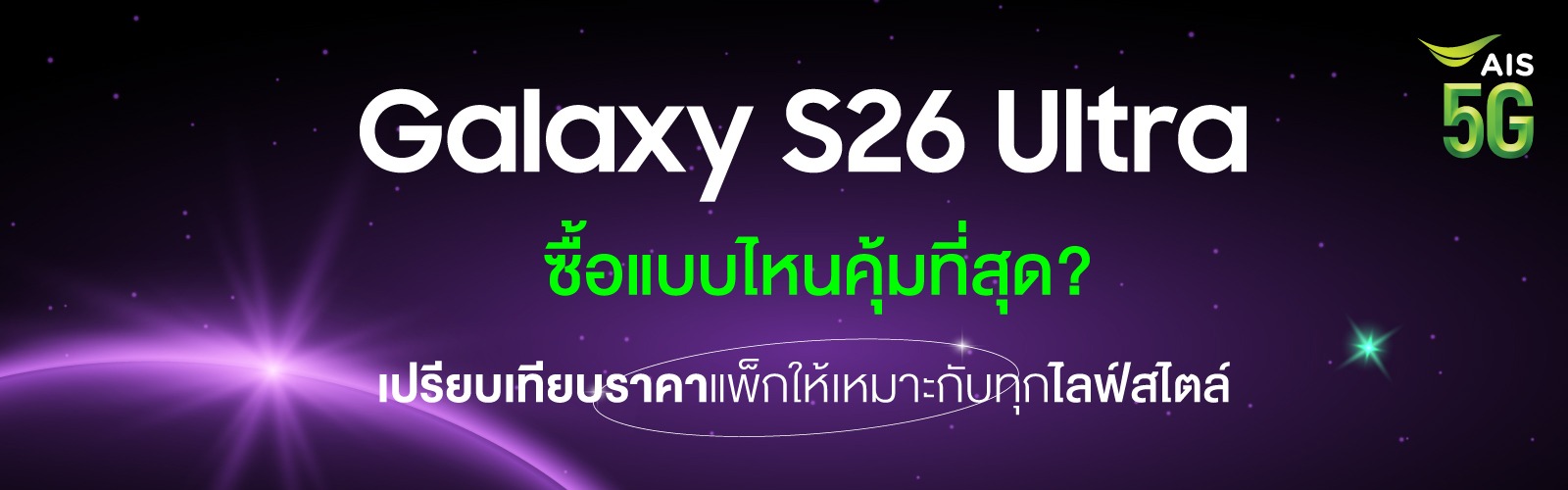 🔥 Samsung Galaxy S26 Ultra เริ่มต้นเพียง 41,500 บาท เมื่อซื้อเครื่องพร้อมแพ็ก หรือเลือกซื้อเครื่องเปล่าอัปความจุ 2 เท่า