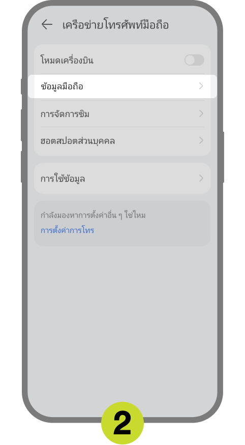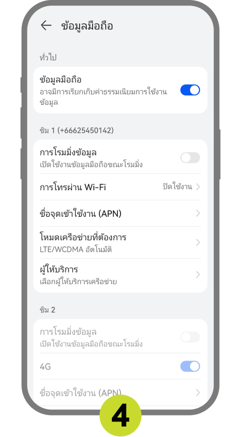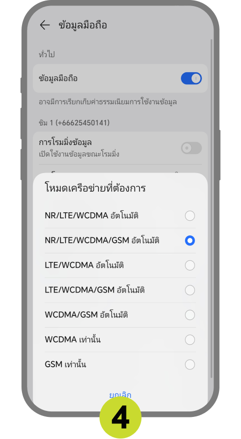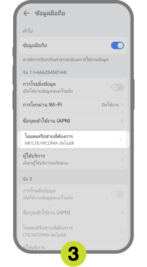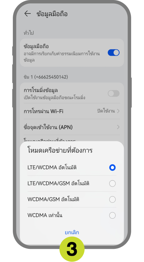 EN: Settings > Mobile network > Mobile dataท > LTE/WCDMA Auto