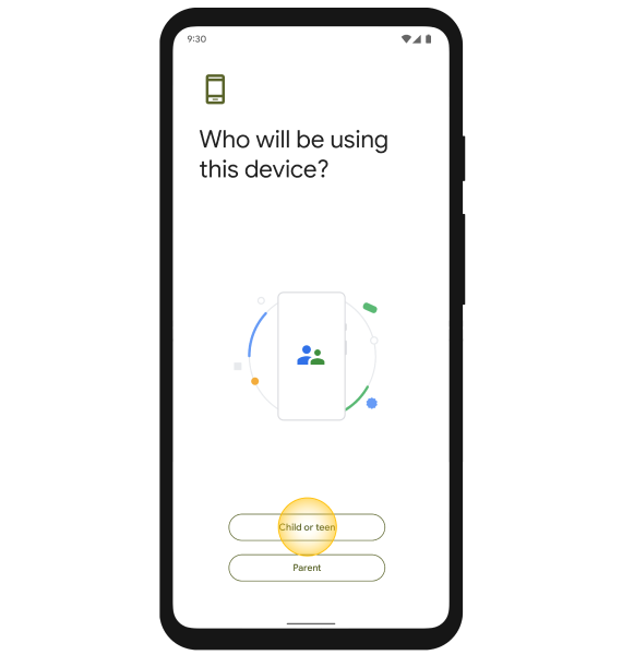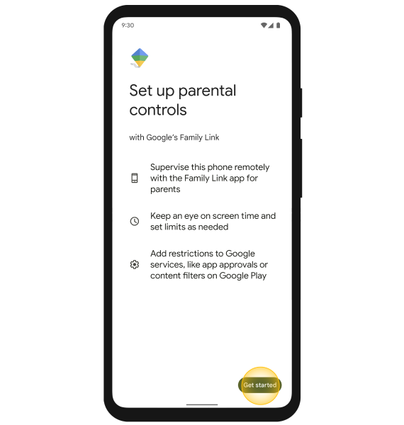 2. บุตรหลานเข้า "การตั้งค่า" > "Google" > "เด็กและครอบครัว" > "การควบคุมโดยผู้ปกครอง" แล้วทำตามขั้นตอน