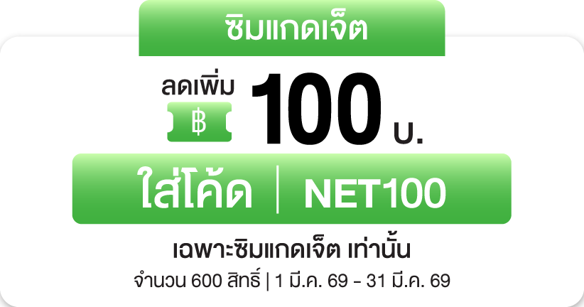 • โค้ดส่วนลด ‘NET100’ มูลค่า 100 บาท จำนวน 600 สิทธิ์ สามารถใช้เป็นส่วนลดสำหรับการซื้อซิมการ์ดประเภทเติมเงิน บนเว็บไซต์ AIS Online Store ใช้ได้ เฉพาะ Gadget SIM ราคา 1,500 บาท เท่านั้น