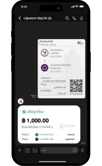 12. ส่งรูปสลิปลงกลุ่มและเริ่มตรวจสอบ