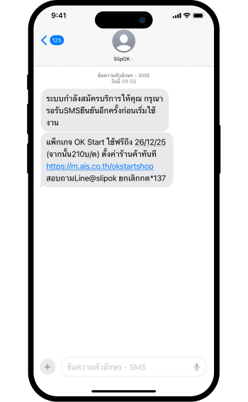 A : ขอสงวนสิทธิ์เฉพาะแพ็กเกจที่กำหนด สามารถสมัครทดลองใช้บริการ SlipOK เช็คสลิปโอนเงิน ฟรี 1 เดือน กด *545*214#