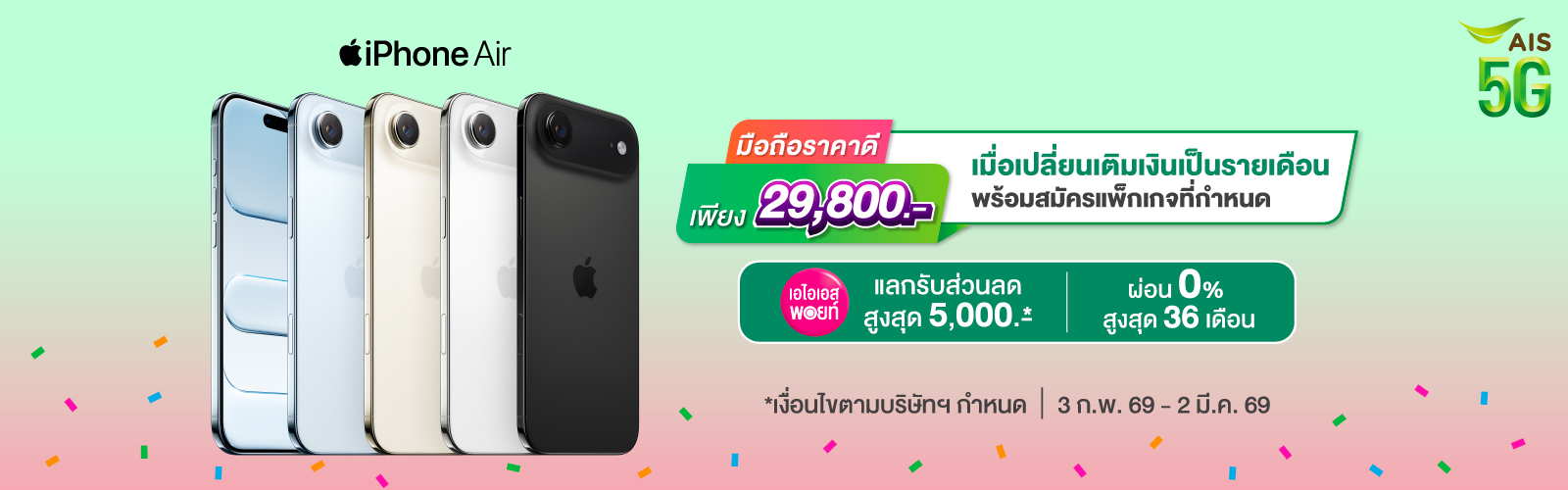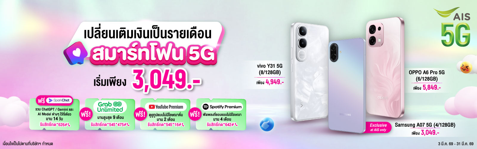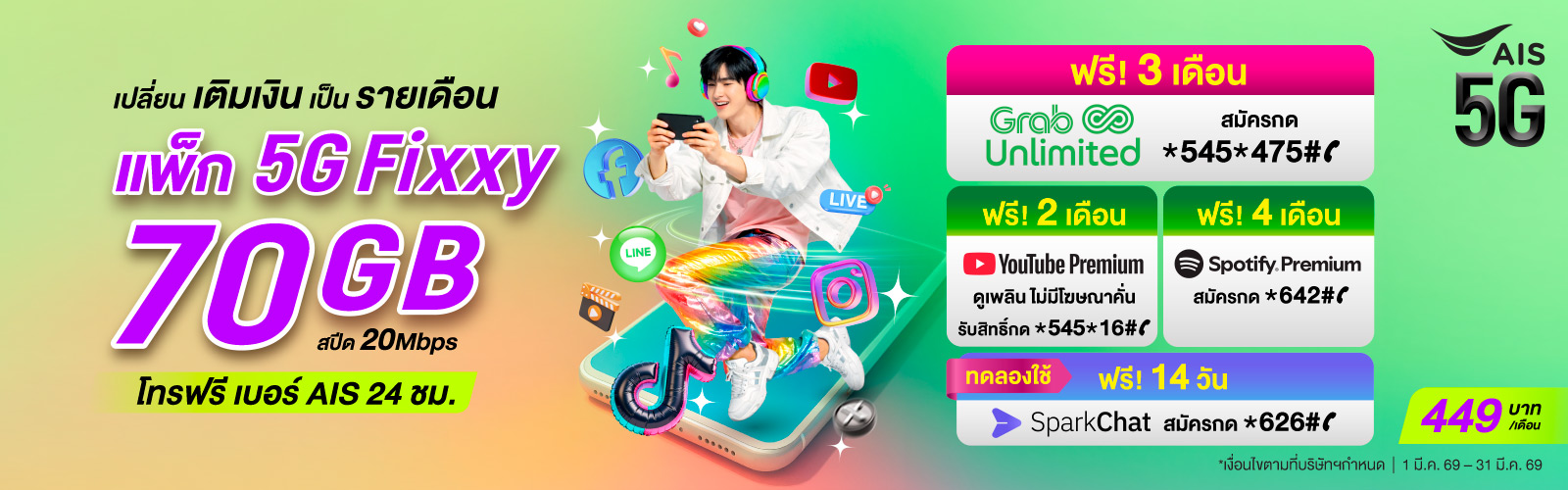 เลือกสมัครรับข้อเสนอ แพ็กเกจ 5G ราคาสุดคุ้ม เน็ตจุใจ โทรฟรีในเครือข่าย AIS