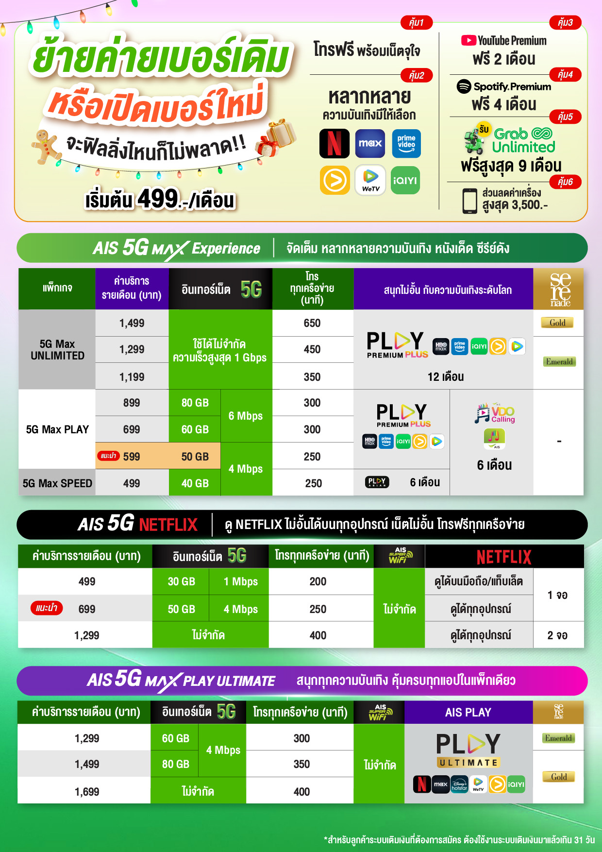 เลือกสมัครรับข้อเสนอ แพ็กเกจ 5G ราคาสุดคุ้ม เน็ตจุใจ โทรฟรีในเครือข่าย AIS