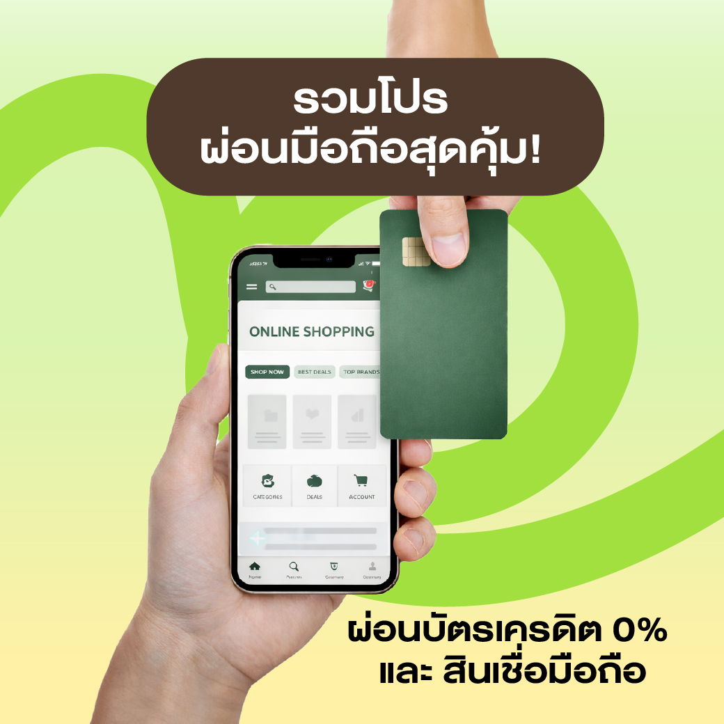 โปรผ่อนมือถือ ดอกเบี้ย 0% จากบัตรเครดิตที่ร่วมรายการ พร้อมสินเชื่อมือถือ ไม่ต้องมีบัตรก็ผ่อนได้ สะดวก ช้อปเลย