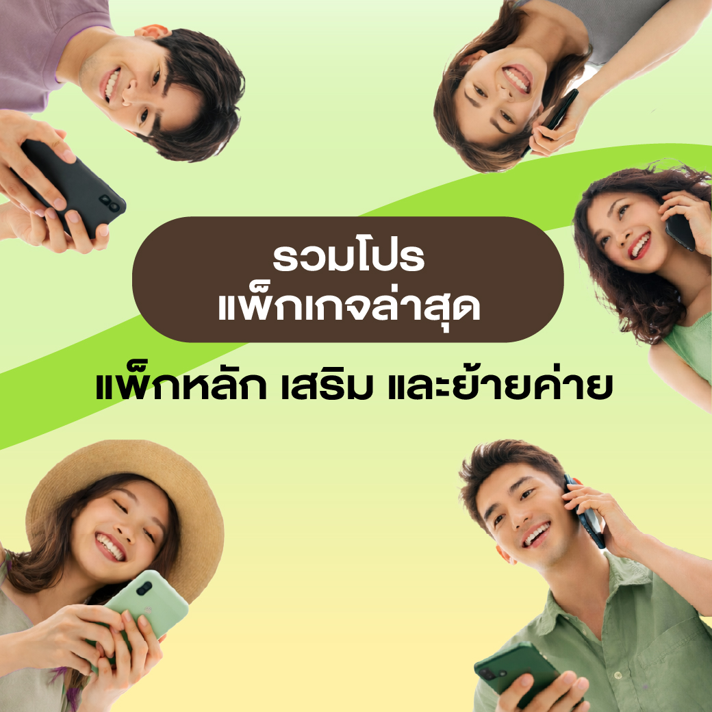 จัดเต็มโปรแพ็กเกจมือถือ 5G ทั้งรายเดือน เติมเงิน และย้ายค่าย พร้อมโปรเน็ตยอดฮิต ไม่ลดสปีด สมัครใช้งานได้เลย