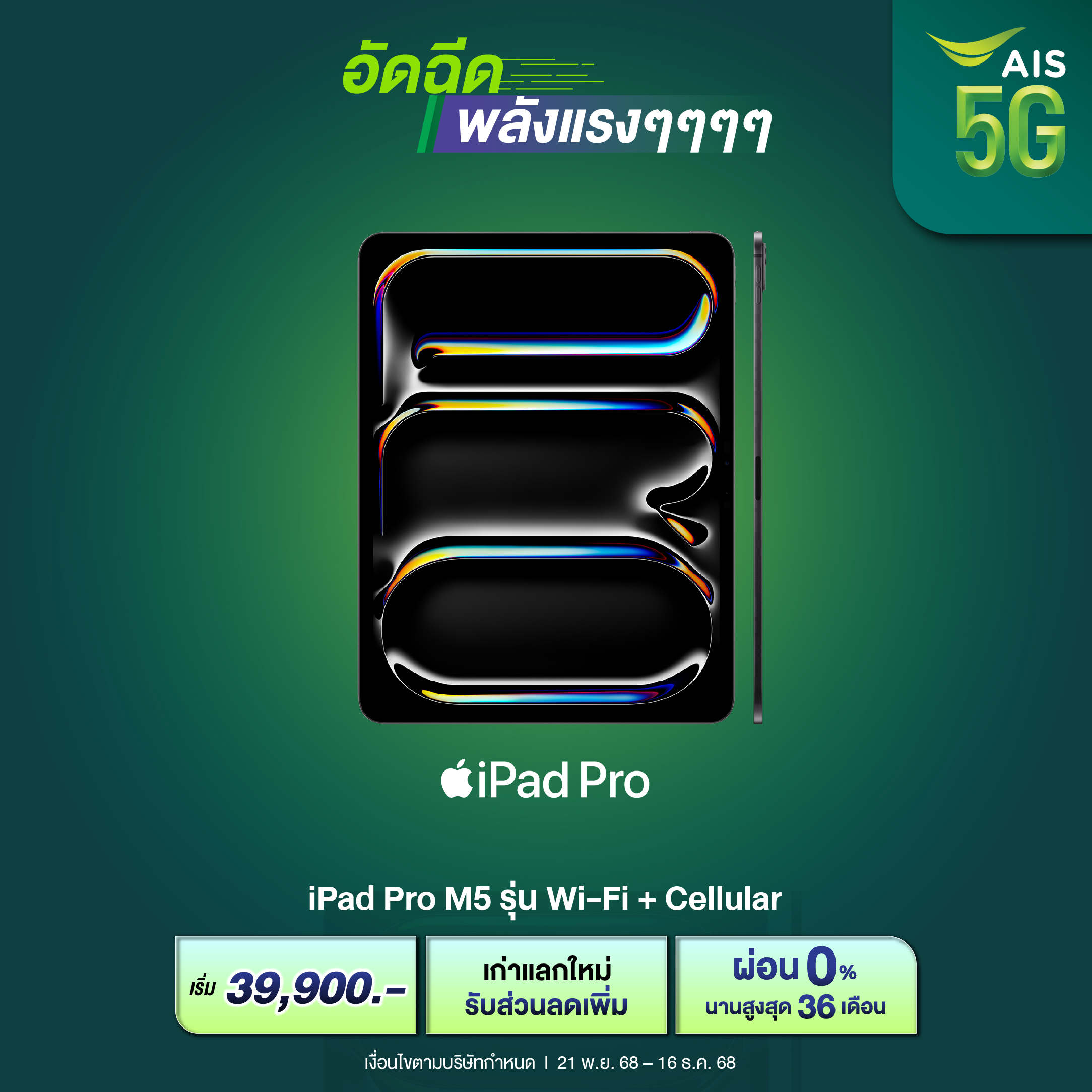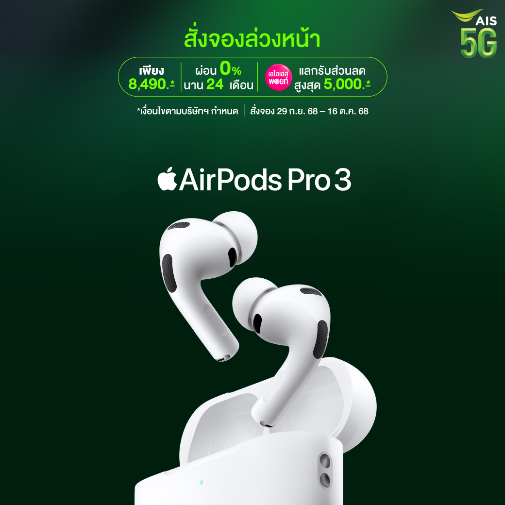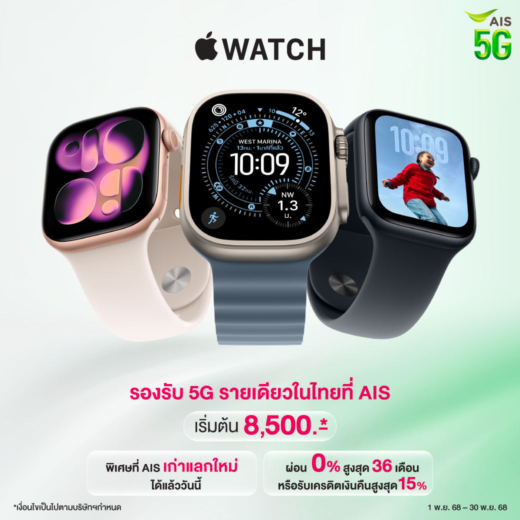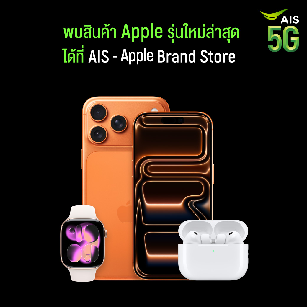 พร้อมสินค้า Apple มากมาย ได้ที่สาขา AIS Shop และ AIS Partner ที่เข้าร่วมโครงการตั้งแต่ 25 มิ.ย. 68 - 31 ธ.ค. 68 ผ่านบัตรกดเงินสด Umay+