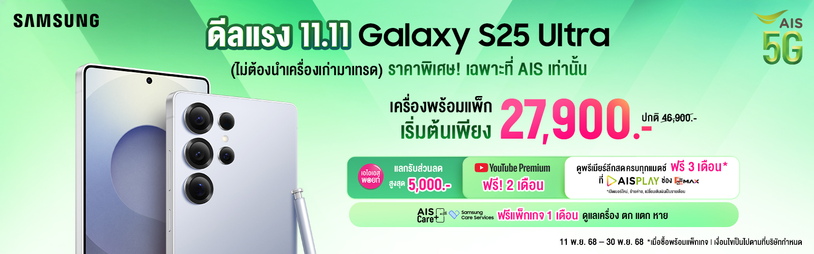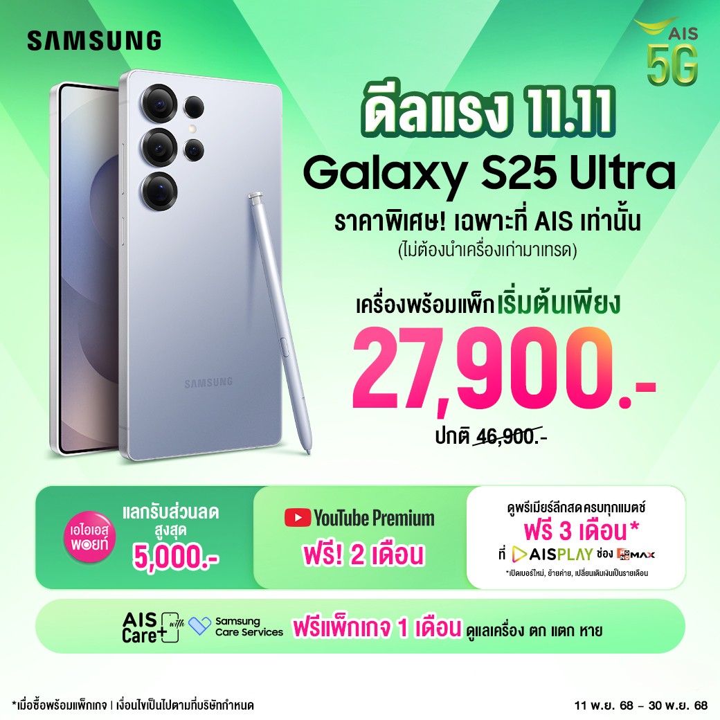 ราคาพิเศษเฉพาะที่ AIS เท่านั้น เครื่องพร้อมแพ็กเริ่มต้นเพียง 27,900 บ. ปกติ 46,900 บ.