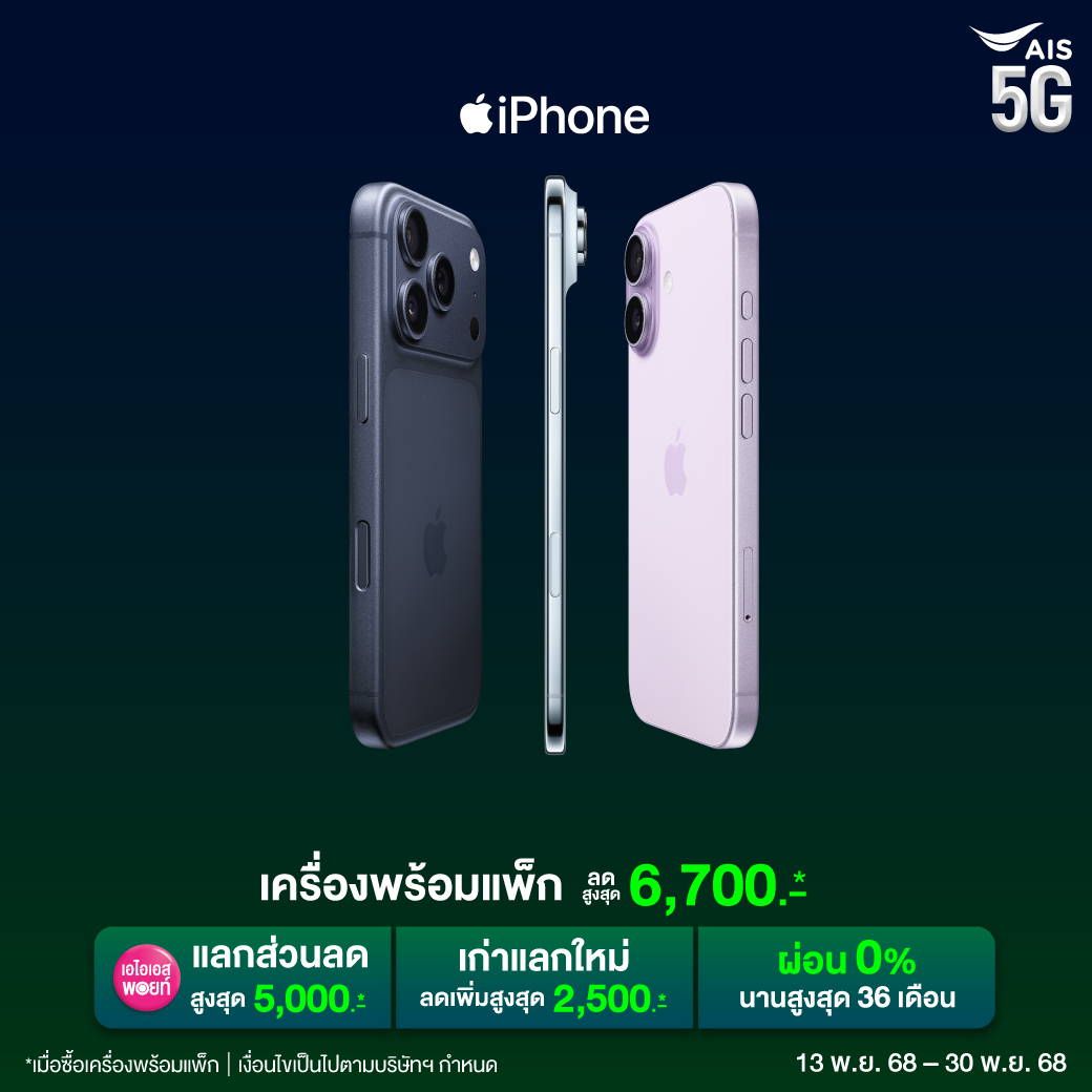 ช้อปเลย ลดสูงสุด 6,700 บาท ผ่อน 0% พร้อมส่งฟรีทั่วไทย ที่ AIS Online Store