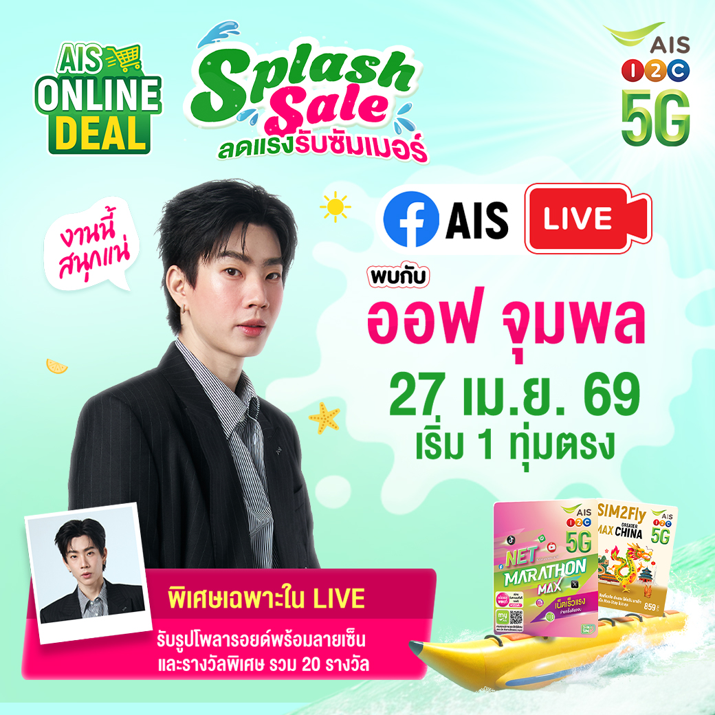สั่งซื้อซิม AIS ออนไลน์ราคาพิเศษ ทั้งซิมเน็ตรายปี ซิม Marahtron และ SIM2Fly รับส่วนลดสูงสุด 300 บาท พร้อมคะแนน AIS Points ส่งฟรีถึงบ้าน