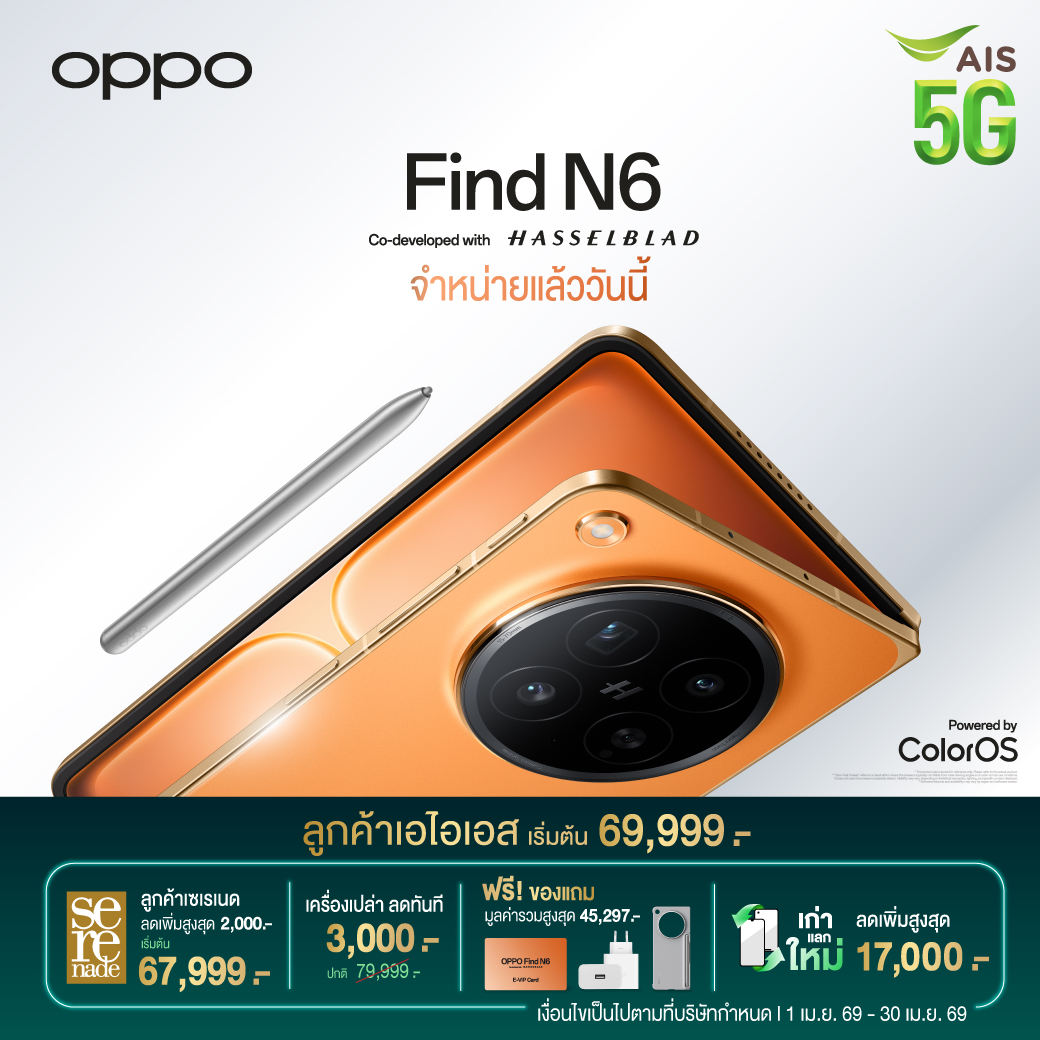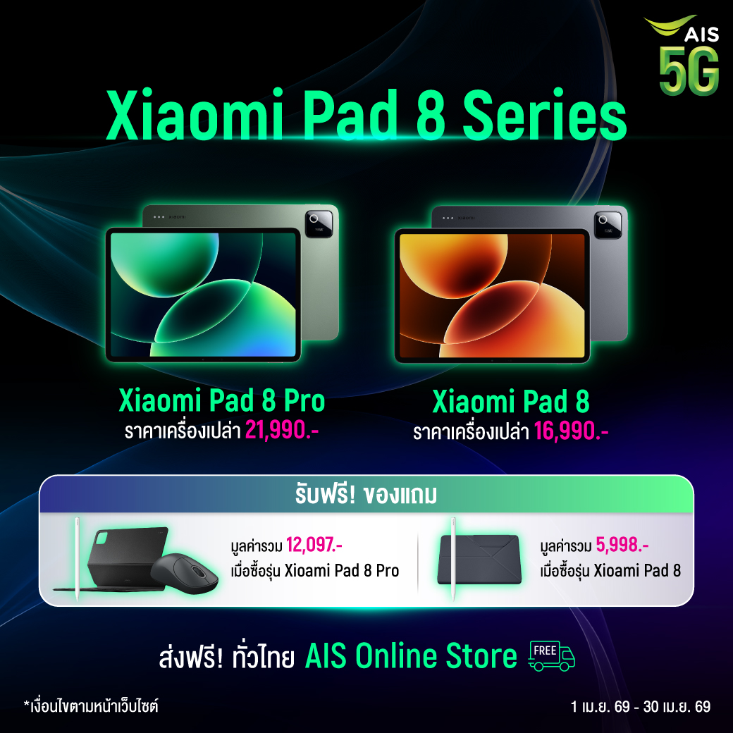 เริ่มต้น 69,999 บาท รับฟรี! ของแถมสุดพรีเมียม พร้อมส่งฟรี ที่ AIS Online Store