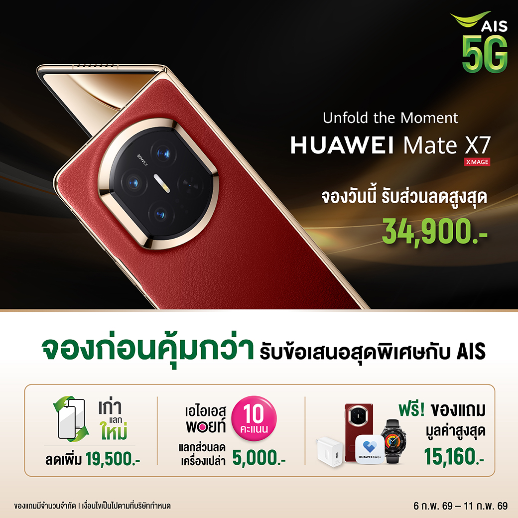 ซื้อก่อนคุ้มกว่า HUAWEI Mate X7 ลดสูงสุด 32,900.- พร้อม โปรผ่อน 0% 36เดือน