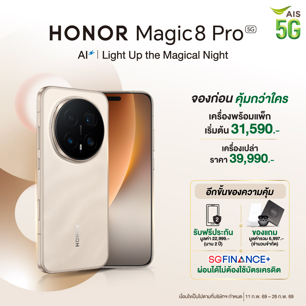 จอง HONOR Magic8 Pro เรือธงกล้อง 200MP Ultra Night Telephoto พร้อมชิป Snapdragon 8 Elite และแบตเตอรี่ 7100mAh พร้อมโปรโมชันผ่อน 0%