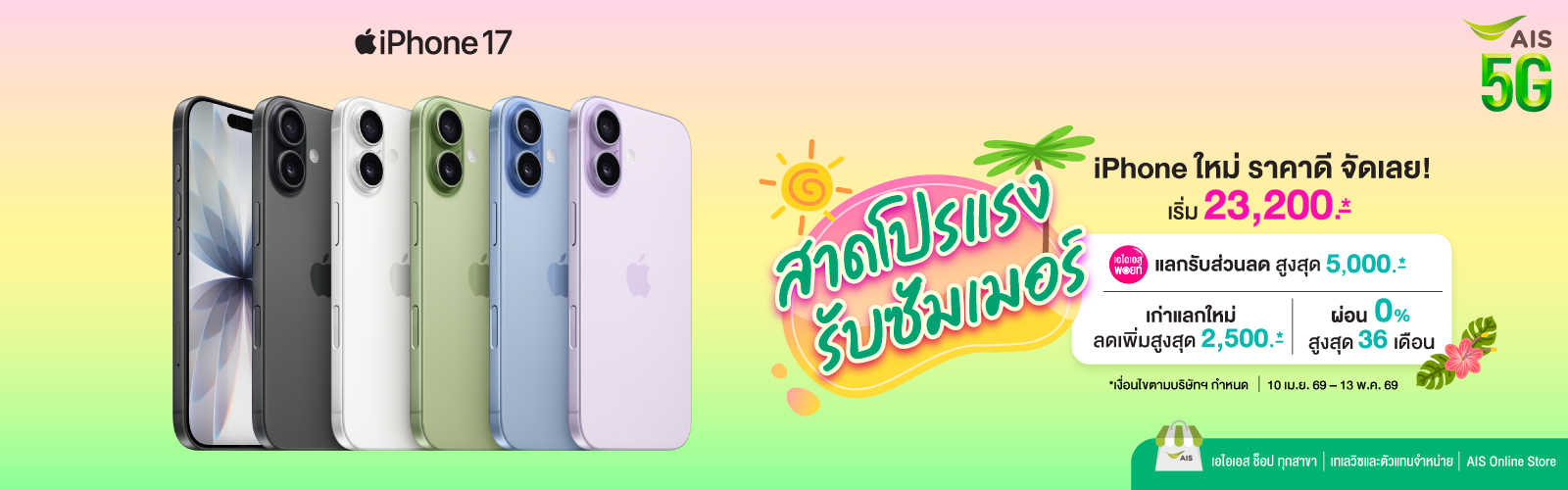 สมัครได้ทันทีหลังจากซื้อ iPhone หรือภายใน 30 วัน โดยไม่ต้องตรวจสภาพเครื่อง ที่ AIS Shop และ AIS Telewiz ทุกสาขา
