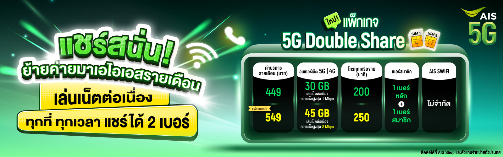 แชร์ได้ 2 เบอร์ เล่นเน็ตต่อเนื่อง ทุกที่ ทุกเวลา