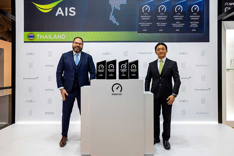 AIS continues to set new standards for Thailand’s digital infrastructure, demonstrating comprehensive network excellence by winning top awards for both mobile and fixed broadband services from Ookla®, the global leader in network intelligence and performance analytics. The achievement reflects AIS’s true market leadership, with network quality spanning speed, consistency, and reliability.