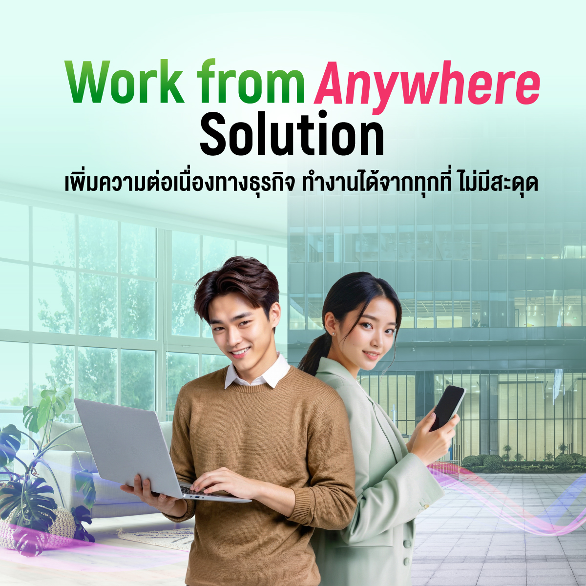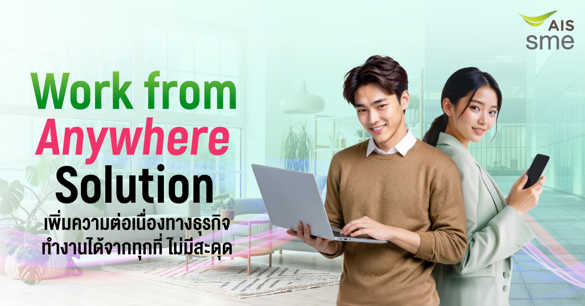 AIS Business ตอกย้ำบทบาทในฐานะ Intelligent Infrastructure ผู้นำโครงข่ายพื้นฐานดิจิทัลอัจฉริยะของไทย พร้อมเคียงข้างคนไทยและภาคธุรกิจในทุกสถานการณ์ เดินหน้าสนับสนุนนโยบายภาครัฐ ท่ามกลางภาวะเศรษฐกิจโลกที่ยังมีความไม่แน่นอนและความตึงเครียดในภูมิภาค ซึ่งส่งผลต่อการดำเนินธุรกิจในหลายภาคส่วน AIS Business จึงพัฒนาออกแบบโซลูชัน “Work from Anywhere” ที่ตอบโจทย์การใช้งานจริงขององค์กร ครอบคลุมทั้งการใช้งานแอปพลิเคชันสำคัญ การเชื่อมต่ออินเทอร์เน็ตความเร็วสูงผ่านเครือข่าย 5G สำหรับการทำงานนอกสถานที่ และการเพิ่มประสิทธิภาพอินเทอร์เน็ตไฟเบอร์ภายในบ้านหรือสำนักงาน รองรับการใช้งานที่ต่อเนื่อง ไม่สะดุด แม้ในช่วงเวลาที่ต้องการความคล่องตัวสูง อีกทั้งยังรองรับการใช้งานแอปพลิเคชันที่จำเป็นต่อการทำงาน เช่น Microsoft Office 365 และการประชุมออนไลน์ผ่าน Zoom นับเป็นเครื่องมือสำคัญสำหรับการทำงานขององค์กรในปัจจุบัน ช่วยลดข้อจำกัดด้านสถานที่ และยังเพิ่มความพร้อมให้ธุรกิจสามารถดำเนินงานต่อได้อย่างมีประสิทธิภาพ เพื่อช่วยให้องค์กรสามารถทำงานได้อย่างต่อเนื่อง ปลอดภัย และมีประสิทธิภาพได้จากทุกที่ ซึ่งสอดคล้องกับแนวทางของภาครัฐที่สนับสนุนให้หน่วยงานภาครัฐดำเนินงานในรูปแบบ Work From Home (WFH) / Work From Anywhere (WFA) และขอความร่วมมือภาคเอกชนปรับใช้รูปแบบการทำงานที่ยืดหยุ่น มากยิ่งขึ้น