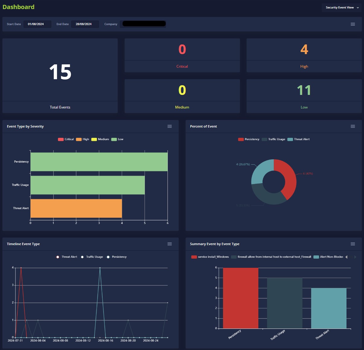Monitor event sequences and activities that may pose cybersecurity risks in real time, presented through intuitive graphs and charts for easy analysis. This enables easier analysis and timely preparedness for potential cybersecurity incidents.