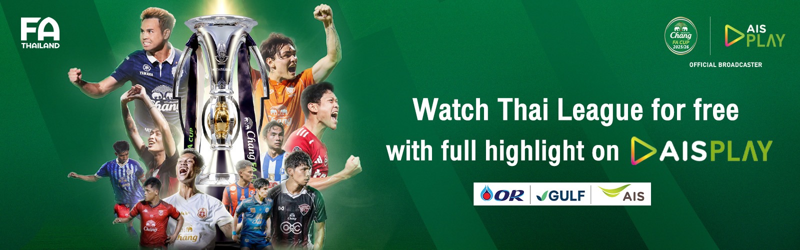 All customers from every network can watch Thai League matches for free — all leagues, every match live — on AIS PLAY.