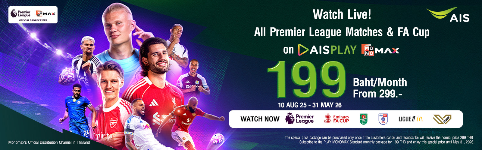 - Watch all live Premier League matches and 63 matches of FA Cup, including highlights and reruns, via AIS PLAY and MONOMAX.